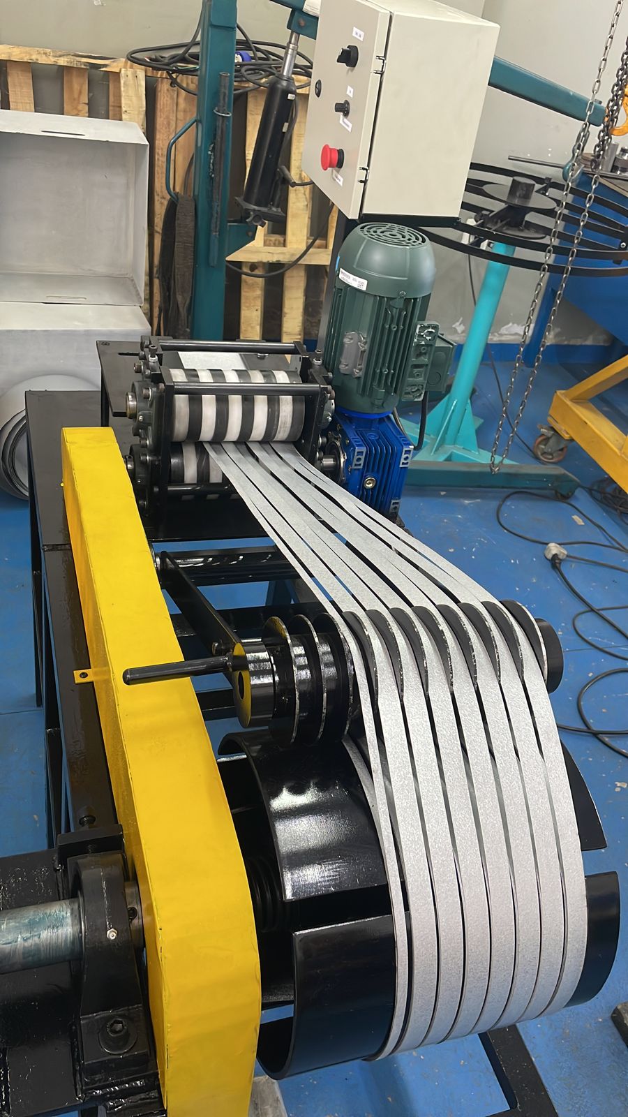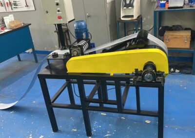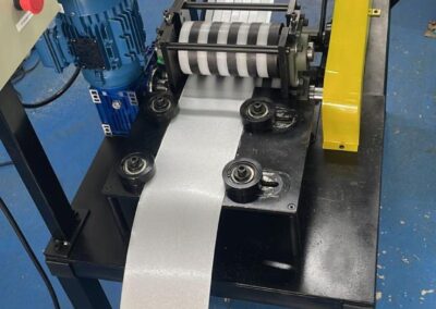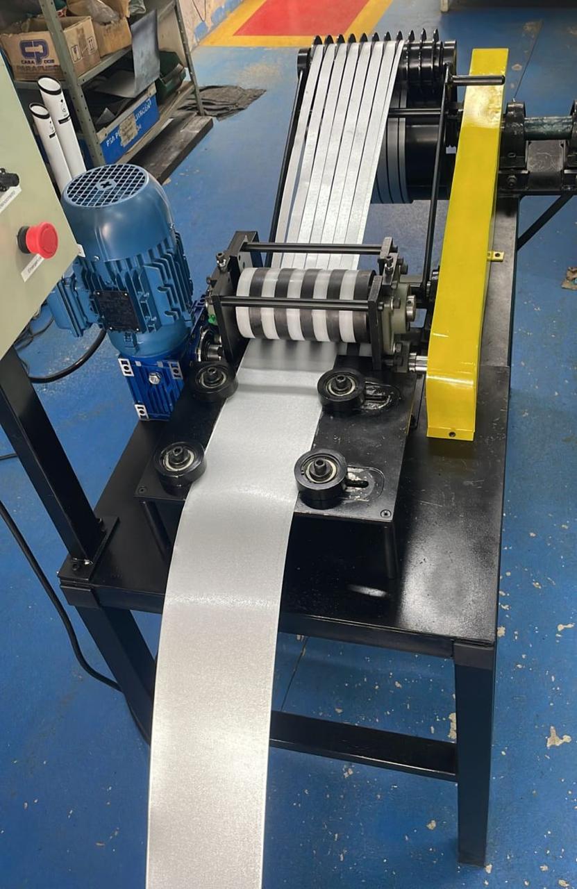 Desenvolvida com foco em estabilidade e controle, a MOLD10F garante um processo de produção contínuo e eficiente. Suas facas em aço especial VC131 são fabricadas sob medida conforme a necessidade de cada cliente, assegurando cortes limpos, uniformes e sem rebarbas. Este equipamento é o coração da autonomia da sua fábrica, preparando as fitas necessárias para alimentar as linhas de concertinas, fitas perfuradas e presilhas.